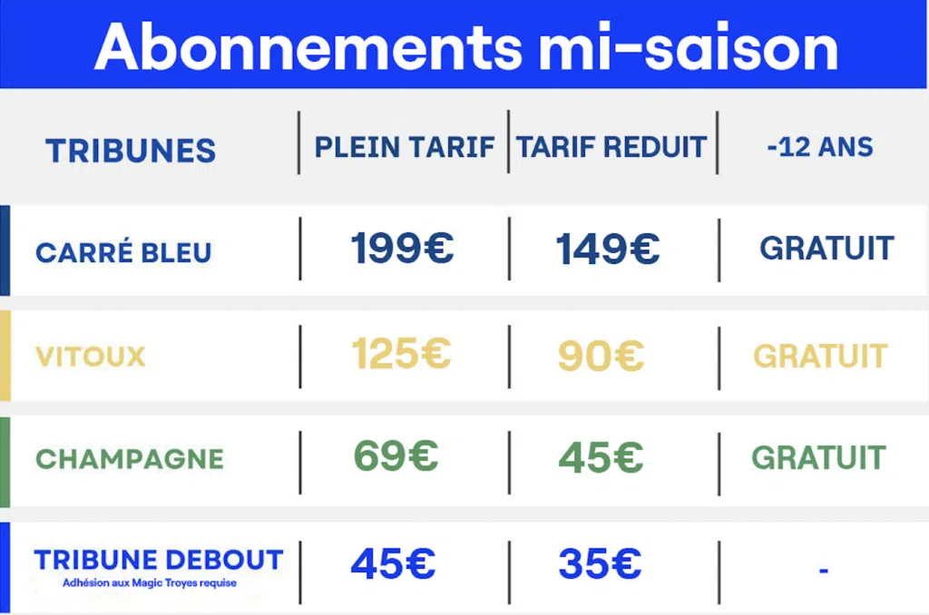 L’ESTAC est heureuse de lancer sa campagne d’abonnement mi-saison 2025-2026. Nous vous offrons dès maintenant la possibilité de vous abonner pour suivre toute la deuxième partie de championnat à nos côtés. Dès 35€, assistez à l’intégralité des matches au Stade de l’Aube, avec des affiches de choix dès le mois de janvier, entre le Red Star (03/01) et le derby face au Stade de Reims (17/01).