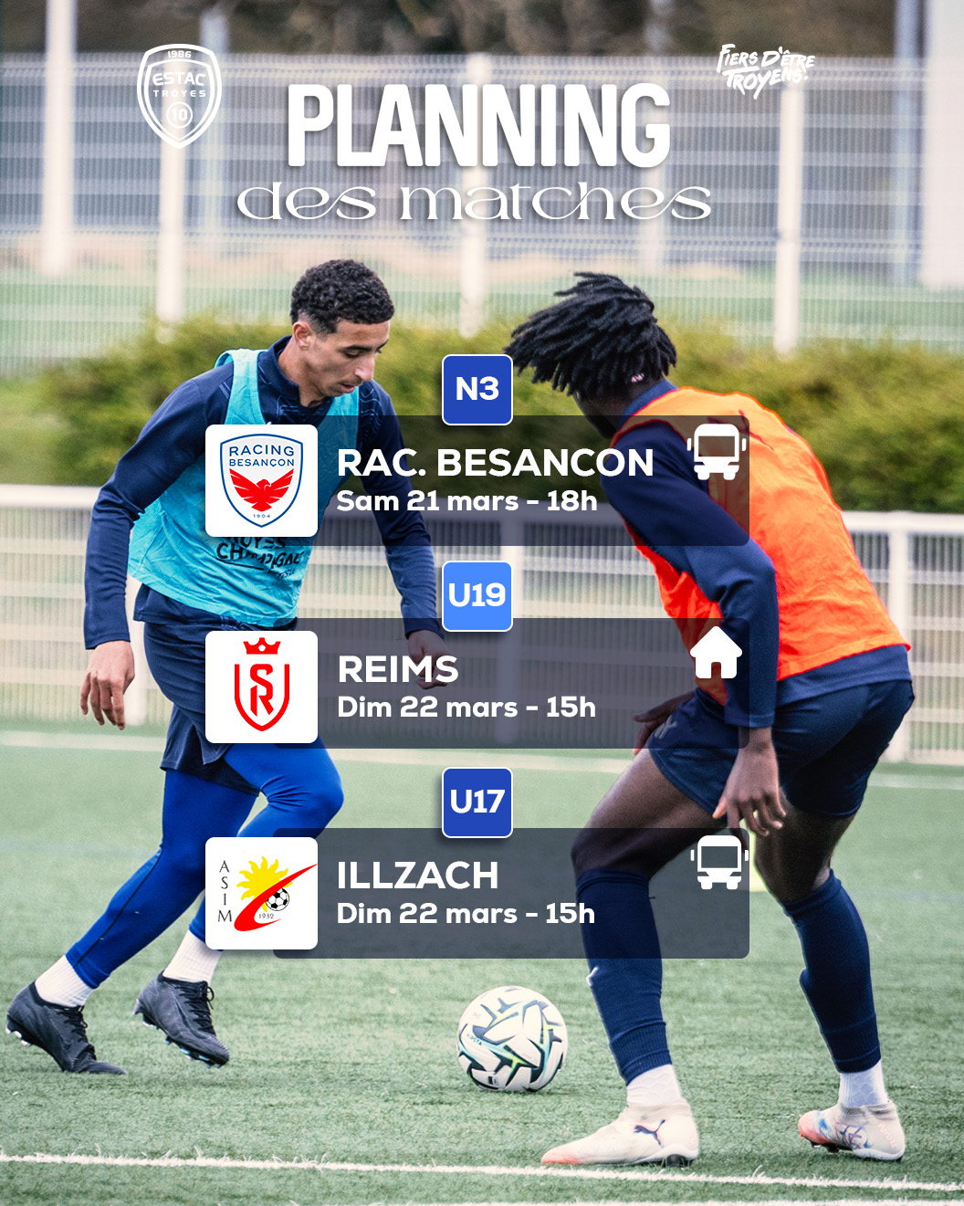 U19 N : ESTAC – Reims (Dimanche 22 mars, 15h) – championnat (Complexe sportif de l’Aube 2)
