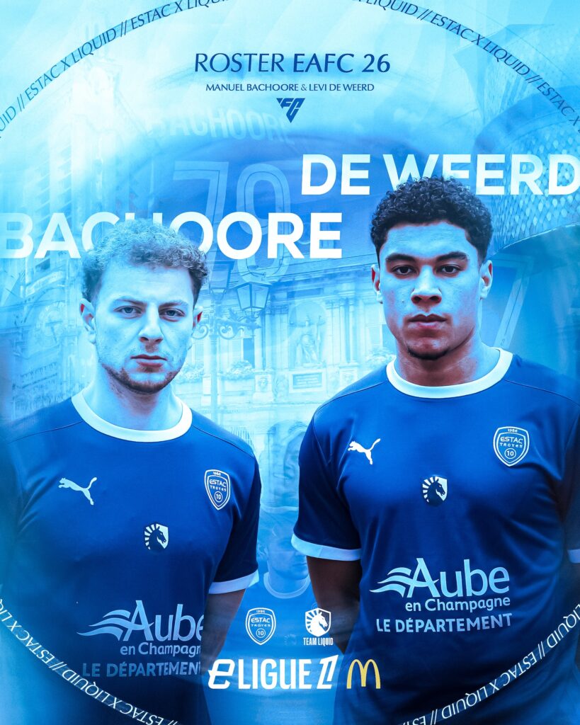 L’ESTAC est heureuse d’annoncer l’arrivée de Manuel Bachoore (champion du monde en titre) et Levi de Weerd au sein de son équipe esport pour la saison EAFC 25-26. Les deux joueurs esport néerlandais, considérés parmi les plus prometteurs de la scène internationale, sont prêtés pour une saison par la prestigieuse Team Liquid et porteront nos couleurs durant tout l’exercice à venir. Ils disputeront la eLigue 1 McDonald’s. Avec ce nouveau roster, l’ESTAC affirme son ambition sur la scène esport et réalise une opération inédite, avec l’une des structures esport les plus influentes du globe.