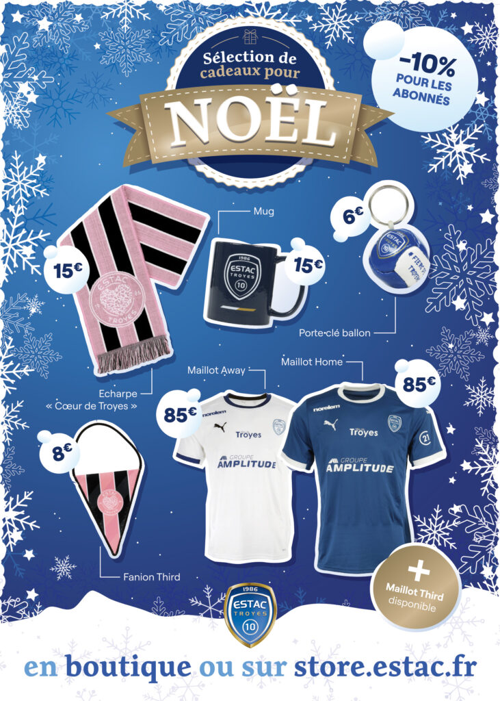 À l’approche des fêtes de fin d’année, la Boutique Officielle de l’ESTAC au Stade de l’Aube élargit ses horaires afin de vous permettre de préparer Noël aux couleurs bleu et blanc !