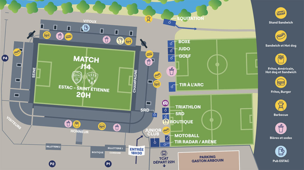 Le Stade de l’Aube s’apprête à vibrer pour la 14e journée de Ligue 2 BKT ! Rendez-vous ce samedi 8 novembre à 20h pour le choc entre l‘ESTAC et l’AS Saint-Étienne. Retrouvez toutes les infos pratiques liées à la rencontre et venez nombreux encourager nos Troyens !