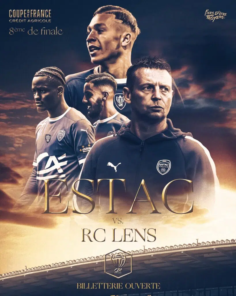 L’ESTAC recevra le RC Lens le mercredi 4 février à 21h00 dans le cadre des 8es de finale de la Coupe de France. La billetterie est officiellement ouverte pour tous. Profitez-en et prenez vos billets pour l’une des rencontres les plus attendues de la saison au Stade de l’Aube.