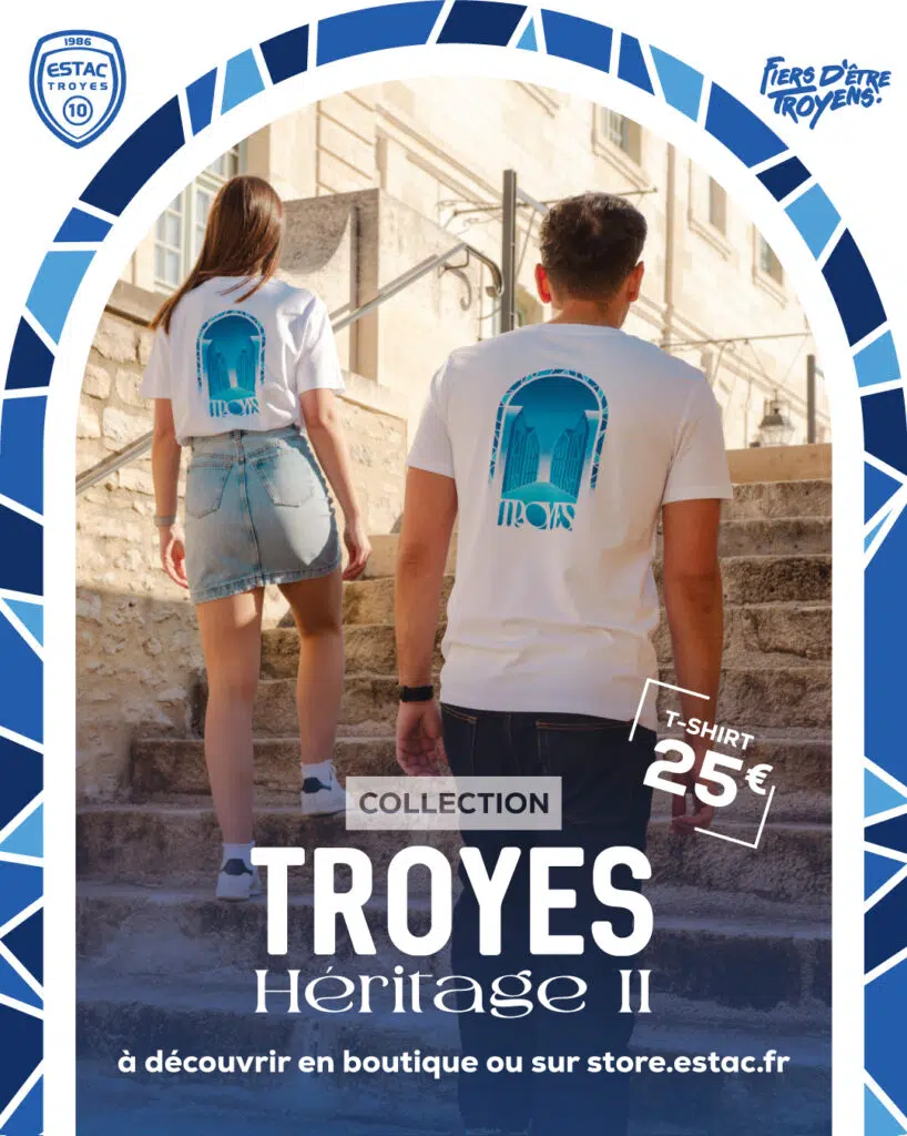 𝑻𝒓𝒐𝒚𝒆𝒔 𝑯𝒆́𝒓𝒊𝒕𝒂𝒈𝒆 𝑰𝑰 : Après le succès de sa version 2025, la gamme Troyes Héritage est de retour cette année, avec un nouveau t-shirt unique ! Un produit à retrouver à la boutique du Stade de l’Aube ce samedi à partir de 10h, au prix de 25€.