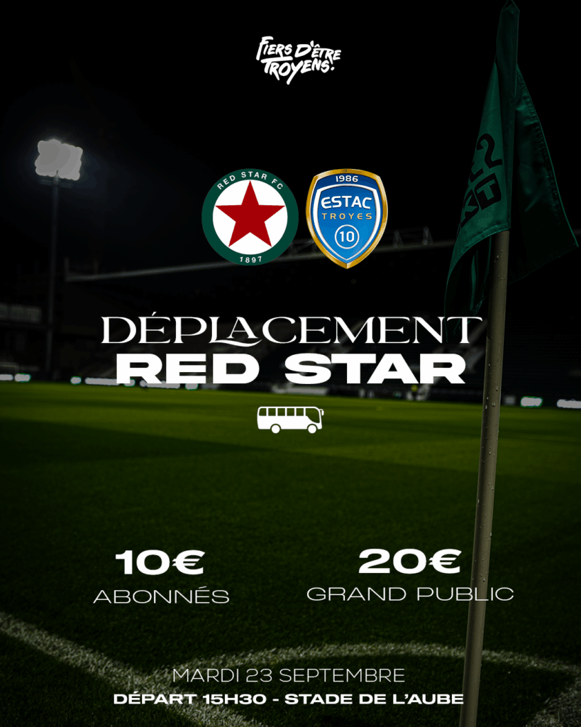 Mardi 23 septembre, les hommes de Stéphane Dumont se déplacent au Red Star dans le cadre de la 7ème journée de Ligue 2 BKT. À cette occasion, le club organise un déplacement pour ses supporters. Pour seulement 10€ (offre abonnés) ou 20€ (grand public), vous pourrez prendre part au déplacement en bus et avoir votre place dans le parcage visiteur. Les infos à retenir :