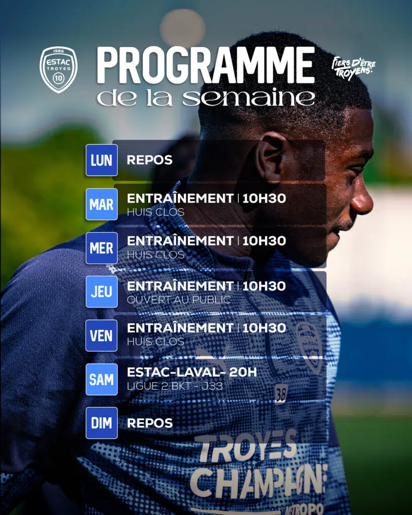 La montée est acquise mais nos Troyens n’ont pas l’intention de relâcher leurs efforts pour écrire encore plus l’histoire ! Retrouvez le programme qui les attend cette semaine avant la réception de Laval au Stade de l’Aube samedi prochain (J33).