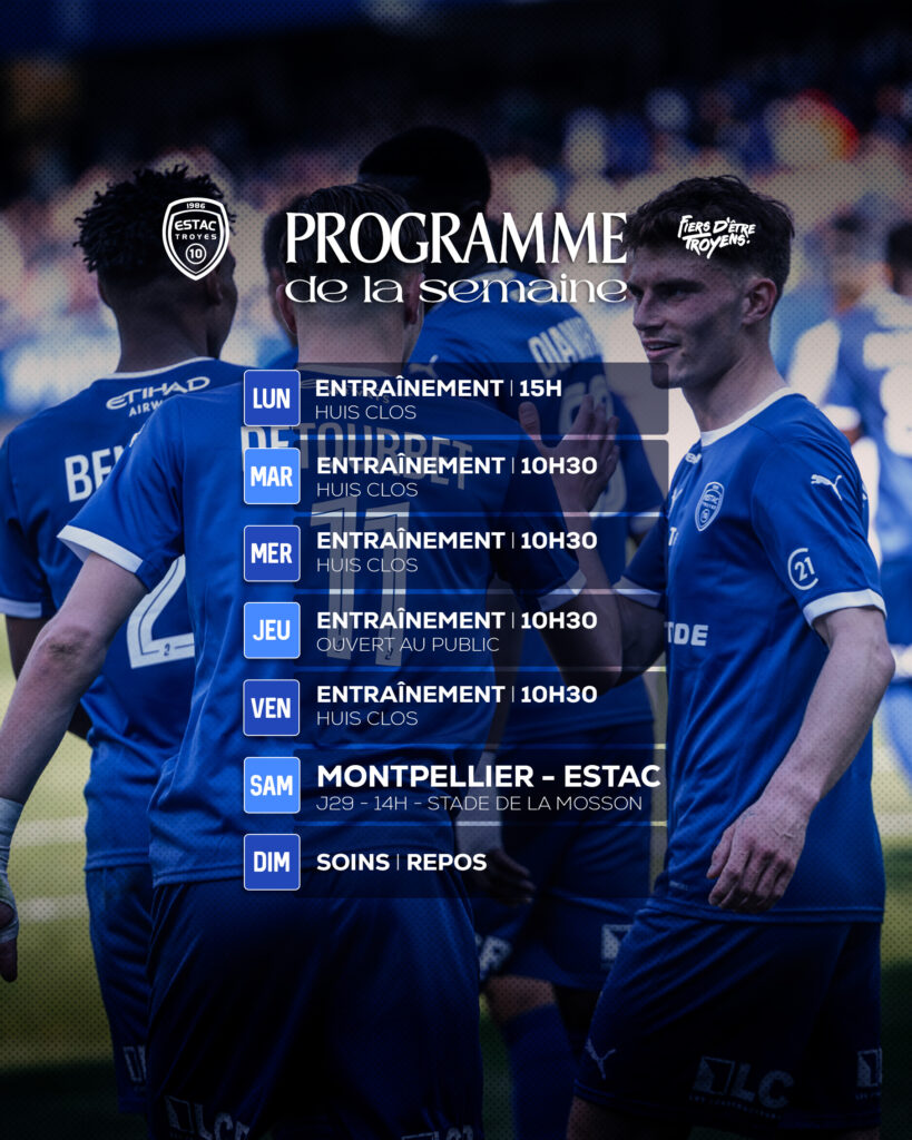 Découvrez le programme qui attend nos Troyens cette semaine avant le retour au championnat samedi et un déplacement dans l’Hérault pour y affronter le MHSC !