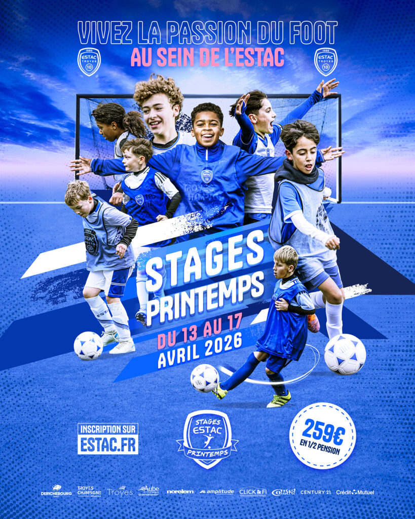 L’équipe des Stages ESTAC vous donne rendez-vous pour les stages printemps ! Ne tardez pas à inscrire vos enfants pour une nouvelle semaine placée sous le signe du football et de la convivialité.